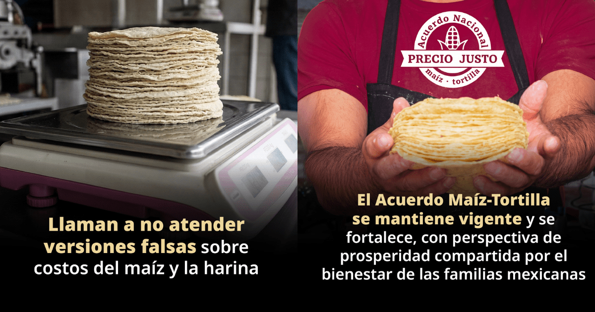 Al mismo tiempo, el gobierno de México advierte a las tortillerías a no subir el precio de la tortilla y a evitar afectar injustificadamente a las familias con aumentos sin sustento, aunque no hay sanciones por hacerlo.