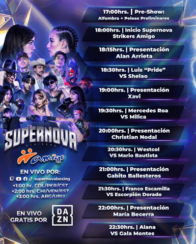 El evento Supernova Strikers se podrá seguir en redes sociales, plataformas de streaming y salas de cine. Los detalles son los siguientes: