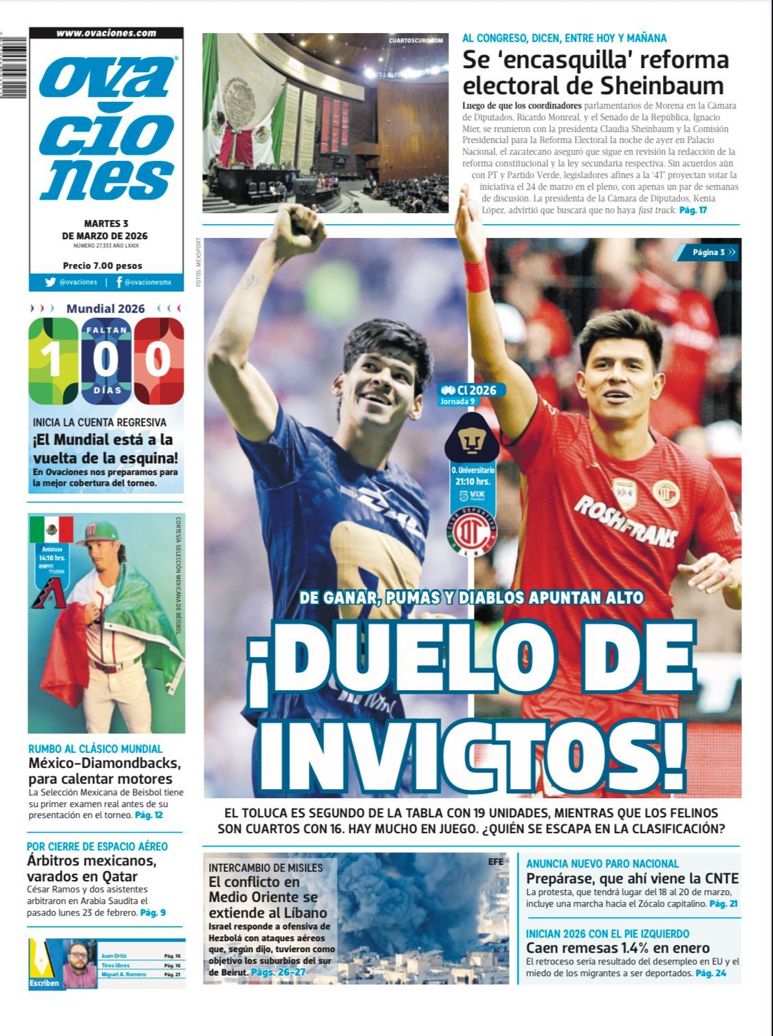 Ovaciones te ofrece sin costo sus ediciones impresas. De lunes a domingo, disfruta la información más relevante, el análisis puntual de nuestros especialistas y las historias que marcan la diferencia