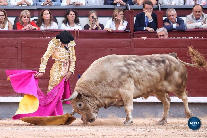 Y para rematar su tarde, le salió el jabonero “Oftalmólogo”, de 628 kilos. Un toro que prometió en los primeros compases, pero se descompuso pronto: salió con la cara suelta, sin celo, y acabó quedándose cortísimo. Le costaba seguir el engaño, se revolvía en un palmo, y la faena se volvió una lucha de proximidad.