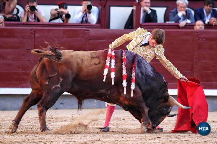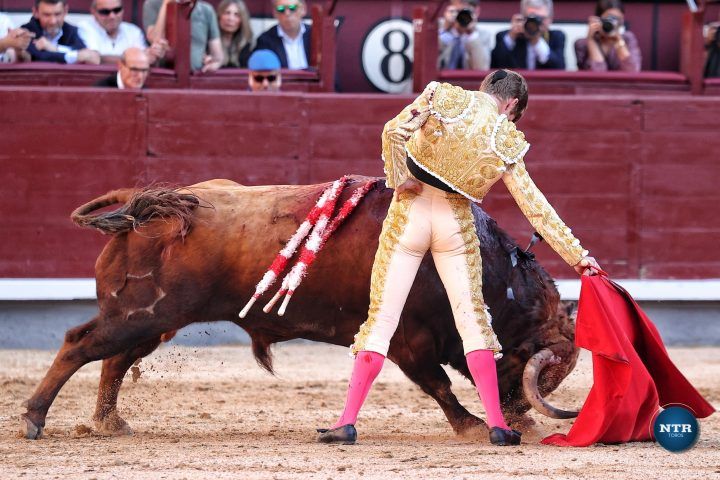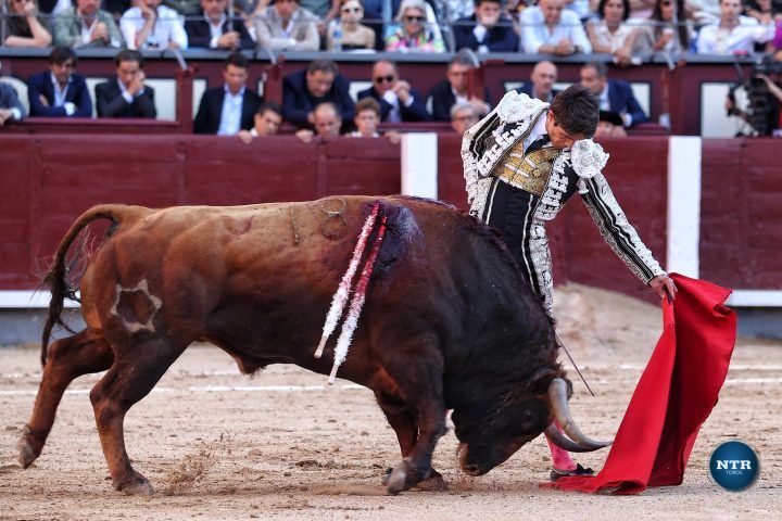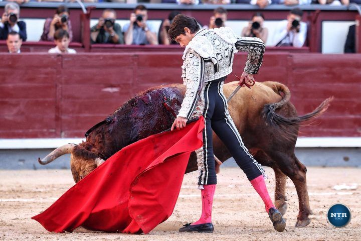 Inició de rodillas y luego doblándose con mando para llevarse al toro largo. Fue una declaración de intenciones: “he venido a por todo”. Y no fue una pose. Por el derecho, Borja lo llevó a ritmo, a tiempo, sin brusquedades, imponiendo su concepto. Por el izquierdo, se abandonó. Toreó con el alma: a pies juntos, con suavidad, girando en el eje, vaciando por detrás. Madrid lo entendió, y lo agradeció.