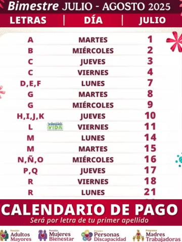 La Secretaría del Bienestar dio a conocer el calendario para los depósitos correspondientes al bimestre julio-agosto de la Pensión del Bienestar, el cual se realiza siguiendo un calendario establecido.