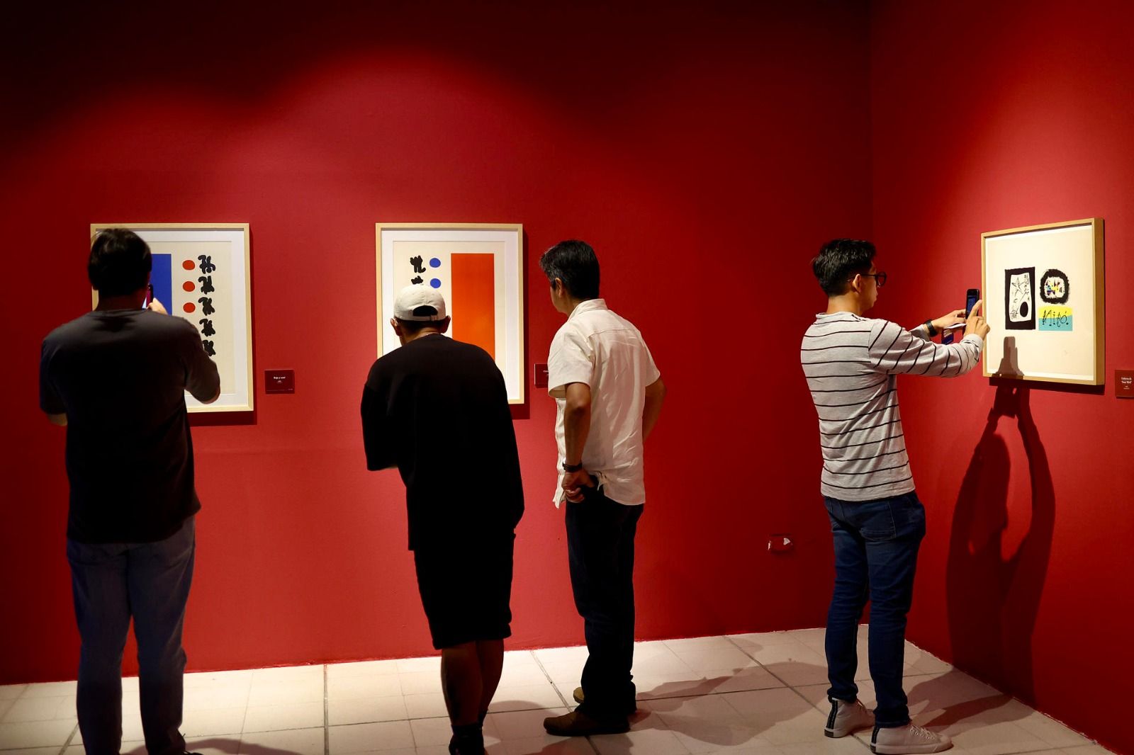MEX6850. MÉRIDA (MÉXICO), 25/01/2024.- Una persona toma una fotografía de una de las obras del artista catalán Joan Miró, el 24 de enero de 2024, en el Centro Cultural Olímpo de la ciudad de Mérida en Yucatán (México). Una muestra con 59 obras del pintor catalán Joan Miró de colecciones privadas se exhibe en el sureste de México, en la ciudad de Mérida, que alberga la exposición como un regalo por su 482 aniversario. EFE/ Lorenzo Hernández