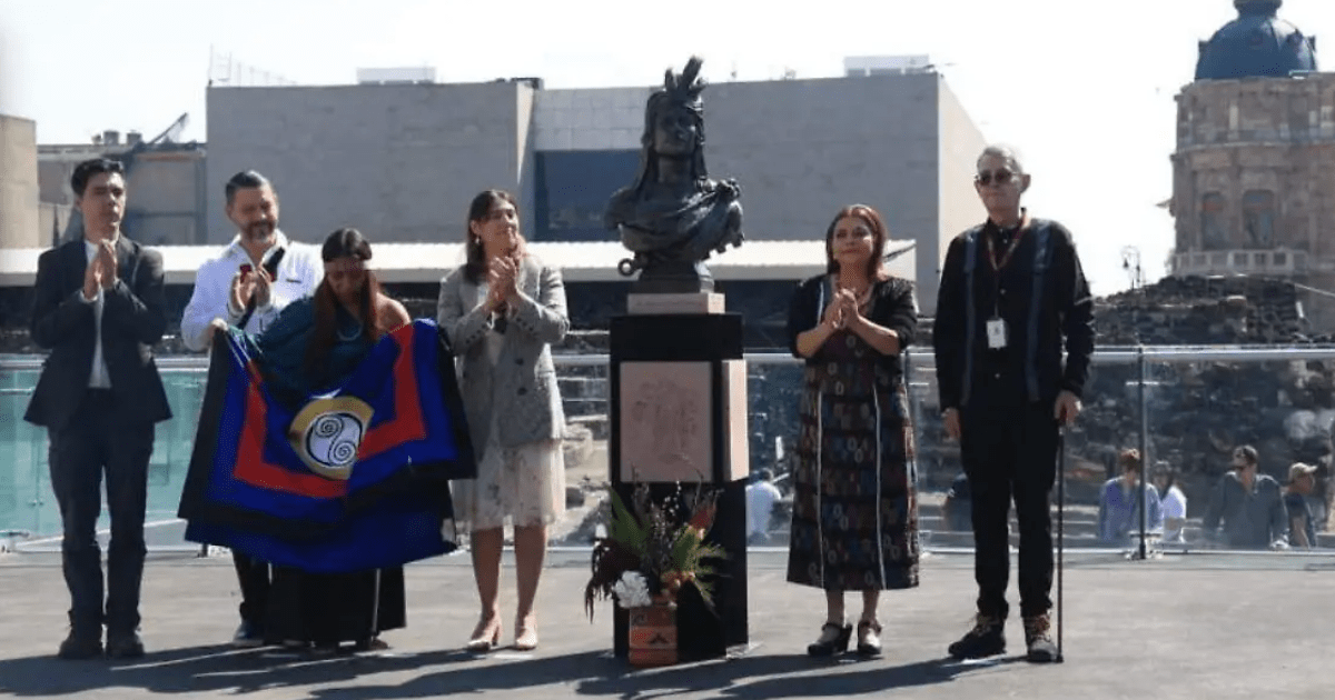 El busto del último tlatoani mexica fue develado frente al recinto que defendió, como acto de memoria histórica y reconocimiento a su legado
