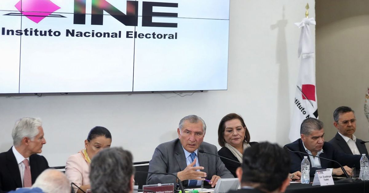 CIUDAD DE MÉXICO, 04ABRIL2023.- Guadalupe Taddei, consejera presidenta del INE; Adán Augusto López, secretario de Gobernación; Alfredo del Mazo Maza, gobernador del Estado de México; Miguel Riquelme, gobernador de Coahuila; José Agustín Ortiz Pinchetti, titular fiscal especializado en Delitos Electorales de la Fiscalía General de la República (FGR), y Rosa Icela Rodríguez, secretaria de Seguridad y Proteción Ciudadana, durante la reunión preparatoria para brindar seguridad en las elecciones del Estado de México y Coahuila, cuyas campañas arrancaron este lunes. FOTO: SEGOB/CUARTOSCURO.COM