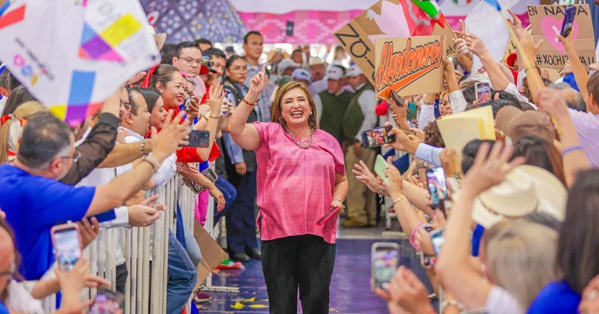 CAMARGO, CHIHUAHUA, 14ABRIL2024.- Xóchitl Gálvez, candidata a la presidencia de México por la coalición Fuerza y Corazón por México llegó a Camargo y fue recibida por 300 tractores y cientos de agricultores de la región. Fue en la entrada norte de Camargo, donde la panista bajó del XochiBus y decidió subirse a un tractor, para comenzar una caravana desde este punto hasta el poliforo municipal Víctor Valles Arrieta, sitio en el que ofreció un mensaje. FOTO: PRENSA XÓCHITL GÁLVEZ/CUARTOSCURO.COM