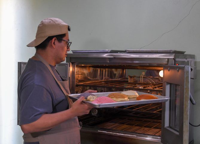 “El proceso empieza desde que estoy formando el pan, le empiezo a dar diseño, tiene que fermentar. Antes de que crezca por completo, termino los últimos detalles y van al horno”, detalla. El ritmo de pedidos lo mantiene en constante actividad, pues la demanda ha crecido gracias a redes sociales.