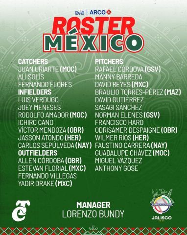 Guadalajara, Jalisco.- La Liga Mexicana del Pacífico definió ayer los rosters de México Rojo (Charros de Jalisco) y México Verde (Tomateros de Culiacán) que habrán de disputar en el estadio Panamericano la Serie del Caribe, a partir del próximo 1 de febrero.