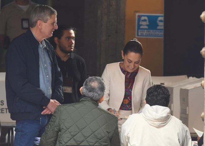 Al salir de la casilla básica en la que sufragó, varias personas, entre funcionarios de casilla, observadores y vecinos del Centro histórico, la jefa del Ejecutivo dirigió un escueto “¡viva la democracia” que repitió tres veces.