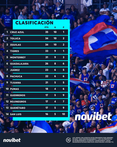Cruz Azul llega con cinco partidos sin perder, resultado de tres victorias y dos empates, lo que los coloca en la cima de la tabla con 35 puntos. Si consiguen un buen resultado, podrían asegurar el liderato general. Sus últimos encuentros han sido: