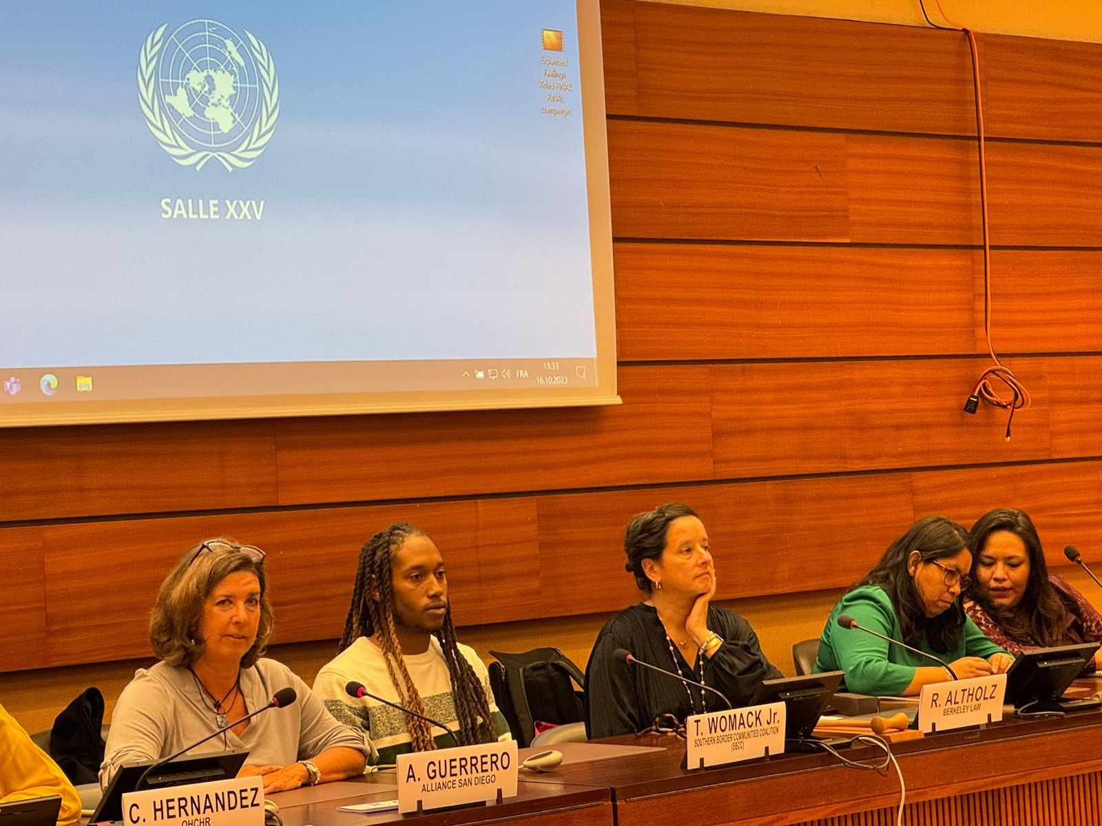 Marisol relata emocionada que el representante de Kenia logró que aplaudieran el valor que ella y sus acompañantes, principalmente el de Andrea Guerrero, integrante de Alliance San Diego, quien es una de las mujeres y organizaciones que impulsa y apoya los migrantes que son víctimas de los abusos de la Patrulla Fronteriza norteamericana, expusieron sin temor a nada los casos de abuso, de los cuales han sido víctimas.