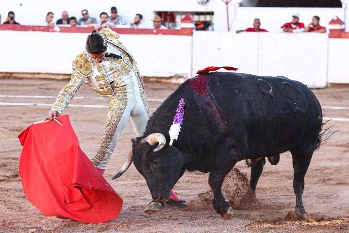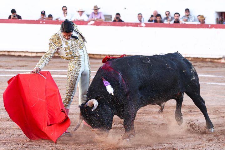 El segundo, “Alegría”, fue otra historia: toro descompuesto y brusco, con peligro. Ahí emergió Sergio Flores, que se impuso con firmeza. Faena de poder y valor, sometiendo al astado con autoridad. Tras pinchazo y estocada, cortó una oreja de peso.