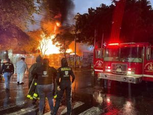 El siniestro comenzó minutos antes de las 19:00 horas de este martes sin que se sepan hasta el momento las causas que lo originaron, aunque la SGIRPC ya ha confirmado el deceso de dos personas al interior del predio.