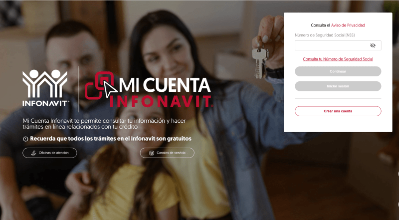 - Da clic en “Mi Cuenta Infonavit” y accede con tu número de seguridad social (NSS) y tu contraseña.