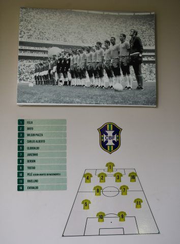 La habitación de Pelé mantiene gran parte de su mobiliario original: la televisión de la época, el escritorio, el baño y el balcón. Se exhiben también objetos simbólicos como una camiseta autografiada por el astro brasileño, una réplica de la Copa Jules Rimet, cerillos del Mundial México 70 y estampas de la mascota Juanito.