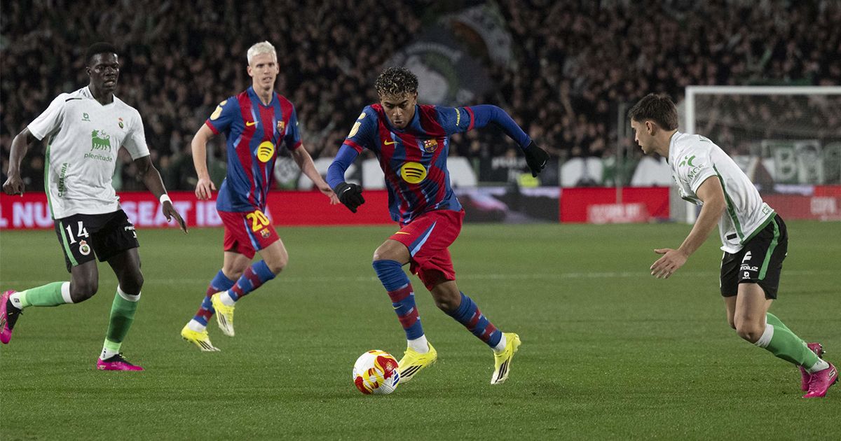 A partir de ahí, el Barça cogió el timón del encuentro realizando posesiones muy largas, aunque sin generar demasiado peligro en la portería verdiblanca. Por su parte, el Racing, bien posicionado defensivamente, buscaba ocasiones de gol a través de transiciones rápidas.