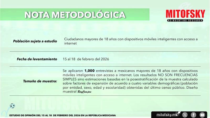 Como cada mes, Mitofsky levanta para Ovaciones una encuesta entre ciudadanos acerca de las expectativas de la selección mexicana rumbo al mundial de fútbol y un tema de interés en este evento que cada vez se pone más candente por su cercanía, aunque no termina de despertar grandes emociones. Los principales resultados son: