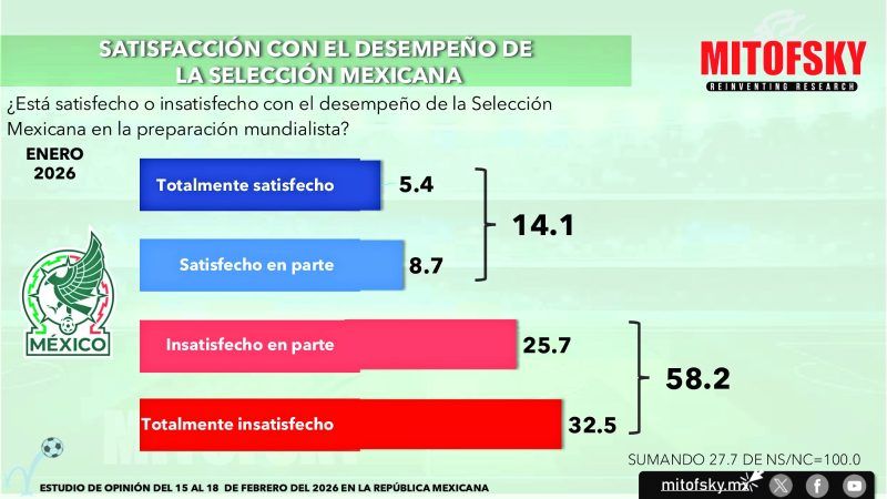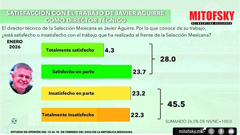 2.- A unos días de los juegos amistosos contra Islandia y Portugal, no existe una base de la selección y los aficionados no tienen claro ni la potencia como equipo ni los jugadores que pueden dar solvencia a la selección mexicana, de esta manera solo 14% se siente satisfecho con lo hecho hasta el momento, prácticamente el mismo que hace dos meses pero inferior al que se encontró en enero después de los dos triunfos que no convencieron a nadie. Por el contrario, la pausa entre partidos hizo que la opinión sobre el Director Técnico dejara de caer y se recupera de 21% a 28% entre enero y febrero.