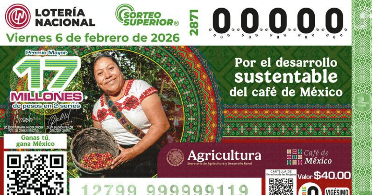 El billete del Sorteo Superior 2871 destacó por su mensaje social, al estar ilustrado con la imagen de una mujer campesina y la leyenda: “Por el desarrollo sustentable del café en México”.