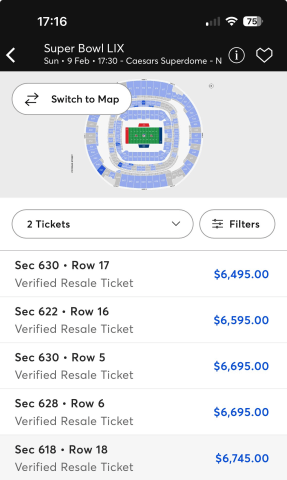La razón de ver precios que van de 8 mil hasta 27 mil dólares es que Ticketmaster no es un solo mercado. Además de la reventa oficial del Super Bowl, la plataforma también ofrece eventos y experiencias alrededor de la semana del juego, como watch parties y paquetes especiales, que manejan precios muy distintos.