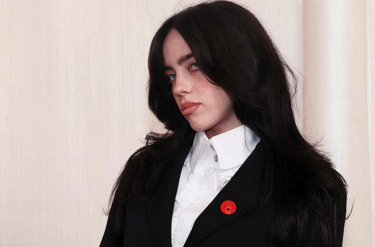 La cantante Billie Eilish y actores como Mahershala Ali, Riz Ahmed o Mark Ruffalo pidieron un alto el fuego en Gaza con un pin rojo en la solapa sobre el que se mostraba un corazón negro. Foto: Reuters