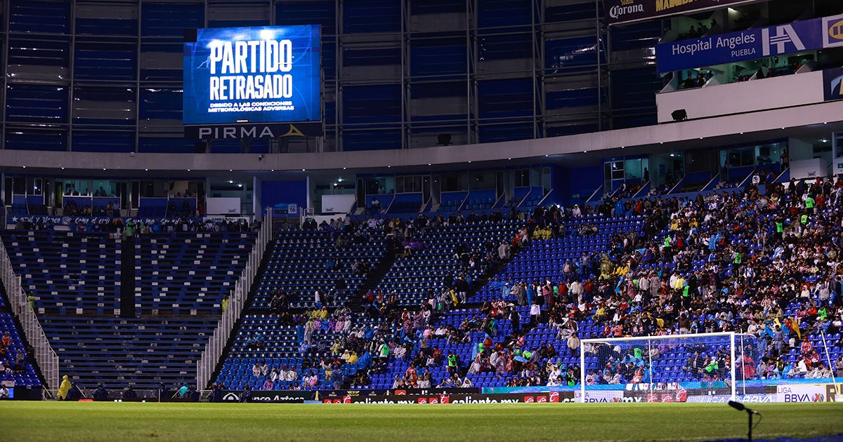 “El partido Club Puebla vs Chivas en el Estadio Cuauhtémoc retrasará su inicio, programado originalmente para las 21 hrs. Esto debido a la tormenta eléctrica en los alrededores del estadio. En coordinación con Protección Civil, se determinará e informará la nueva hora de inicio” —publicó la Liga MX en sus redes sociales a unos minutos del pitazo inicial.