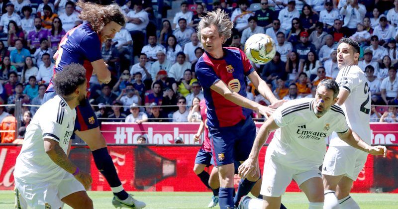 Apenas el árbitro hizo sonar su silbato, el equipo merengue se volcó al frente por la banda derecha con Luis Figo y un envío al área que fue bien rechazado por Carles Puyol, dos viejos conocidos que se reencontraban en México tras tantos años como compañeros y luego rivales tras aquel histórico fichaje del lusitano que revolucionó el mercado para siempre.