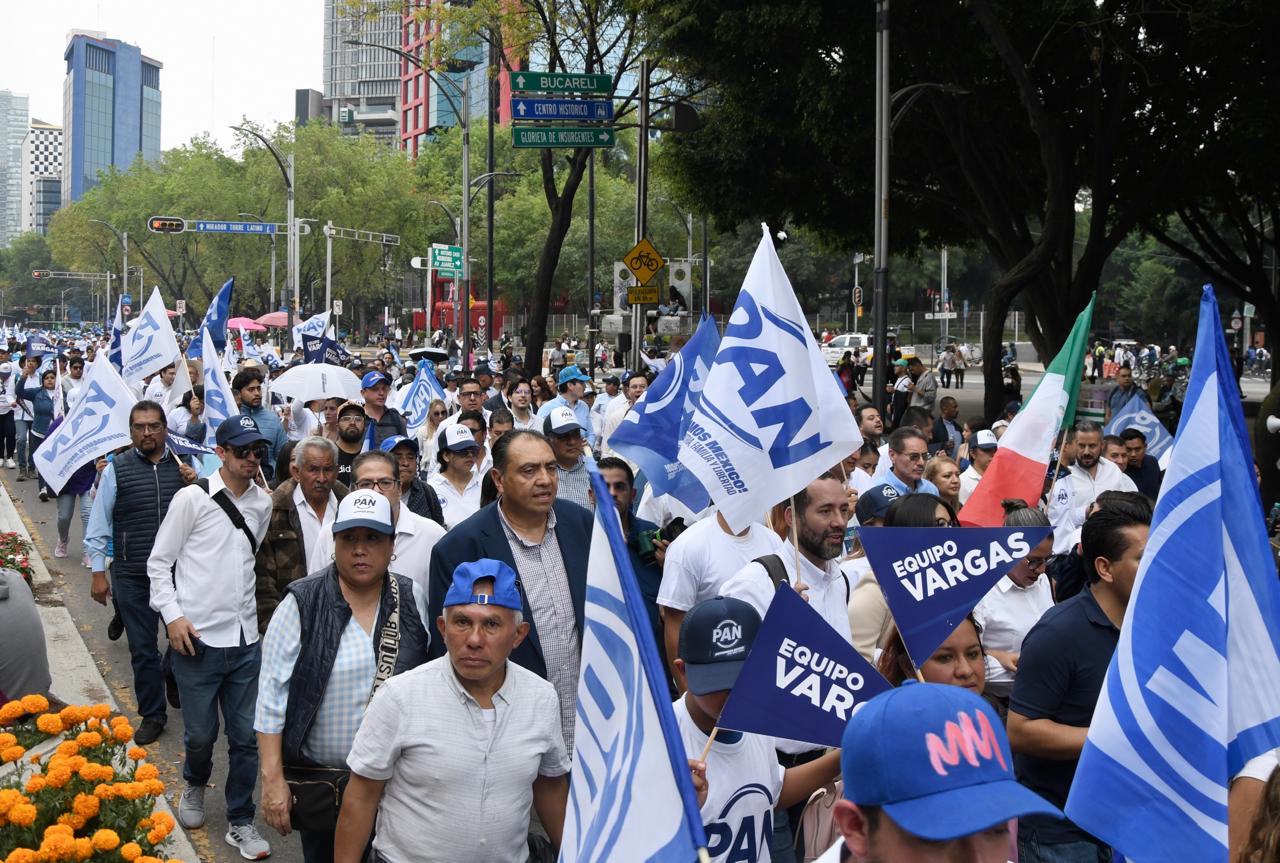 📢 Bajo el lema “¡Gobierno escucha, el PAN está en la lucha!”, avanza sobre Paseo de la Reforma la marcha organizada por el Partido @AccionNacional.