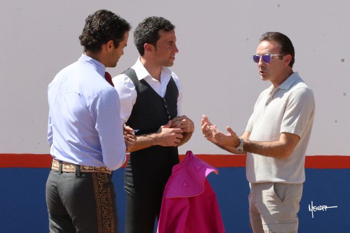Desde el burladero, Enrique Ponce siguió cada muletazo con mirada de maestro. Su papel no se limitó al consejo puntual; acompañó la lectura del comportamiento del animal y la colocación del torero, interviniendo entre series para ajustar conceptos. La relación profesional entre ambos apenas comienza, pero en el campo ya se percibe un diálogo técnico constante.