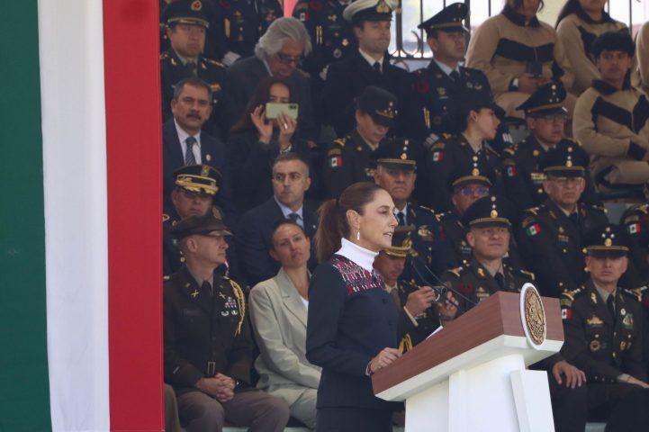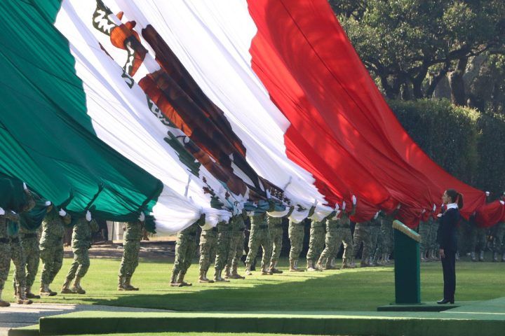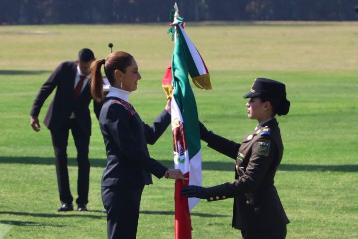 Ante integrantes del Ejército, Fuerza Aérea, Armada y Guardia Nacional, así como estudiantes de distintos niveles educativos, la mandataria sostuvo que la bandera mexicana sintetiza procesos históricos que articularon la identidad nacional, desde el pasado indígena hasta la consolidación republicana.
