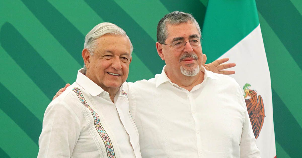 MEX8017. TAPACHULA (MÉXICO), 17/05/2024.- El presidente de México, Andrés Manuel López Obrador (i), y su homólogo de Guatemala, Bernardo Arévalo (d), se abrazan al termino de una rueda de prensa, en el municipio de Tapachula, Chiapas (México). La reunión bilateral entre México y Guatemala inició este viernes con el compromiso de ayuda mutua y de concretar una frontera que “no separe”, expresaron los mandatarios de ambos países en un breve mensaje a medios desde Tapachula, en el sureño estado mexicano de Chiapas. EFE/Juan Manuel Blanco