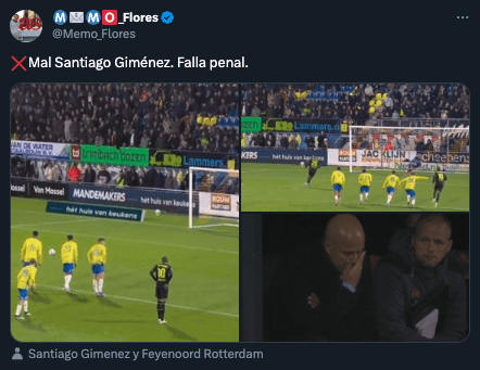 Santiago Giménez pecó de agrandado. El delantero mexicano tuvo la gran oportunidad de reencontrarse con el gol en la Eredivisie en el juego entre el Feyenoord y el Waalwijk pero terminó haciendo el ridículo desde los once pasos.
