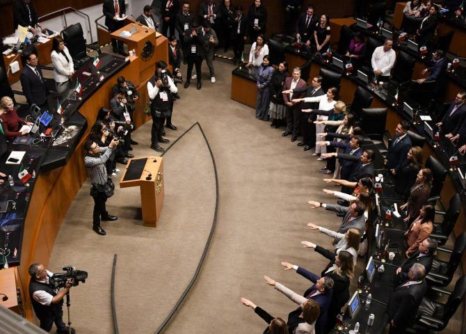 La sesión fue encabezada por la presidenta de la Mesa Directiva, Laura Itzel Castillo Juárez, y contó con la asistencia de 107 de los 128 senadores.