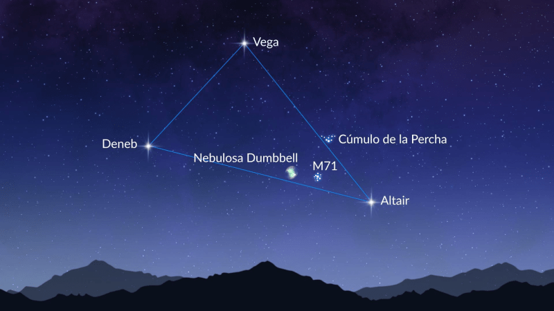 Durante el verano, las tres estrellas serán visibles en el cielo nocturno. No es necesario utilizar binoculares para disfrutarlas, aunque estos pueden mejorar los detalles de la experiencia. Aquí están las estrellas que conforman el Triángulo de verano: