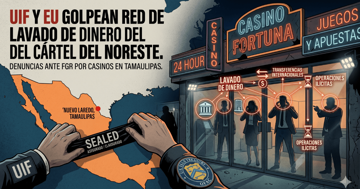 La Unidad de Inteligencia Financiera (UIF), en coordinación con autoridades de Estados Unidos, aseguró que refuerza acciones contra una red vinculada con la operación ilícita de casinos relacionada con el Cártel del Noreste y ya se presentaron las denuncias correspondientes ante la Fiscalía General de la República (FGR).