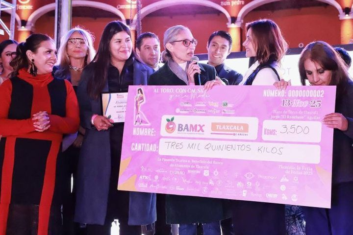 Pero la noche guardaba aún un acto más: la entrega de un cheque simbólico por 3,500 kilos de ayuda, resultado de la recaudación, a la directora del Banco de Alimentos de Tlaxcala. Con ese gesto solidario, la pasarela cerró su segunda edición.