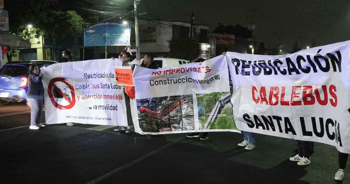 Un grupo de aproximadamente 30 habitantes de las colonias Colinas del Sur y Olivar del Conde bloqueó de manera temporal la avenida Santa Lucía, a la altura de la Secundaria 111, en dirección al Periférico con rumbo a Santa Fe, como forma de protesta contra la construcción de la Línea 5 del Cablebús, proyecto que contempla un trazo entre las alcaldías Magdalena Contreras y Álvaro Obregón.
